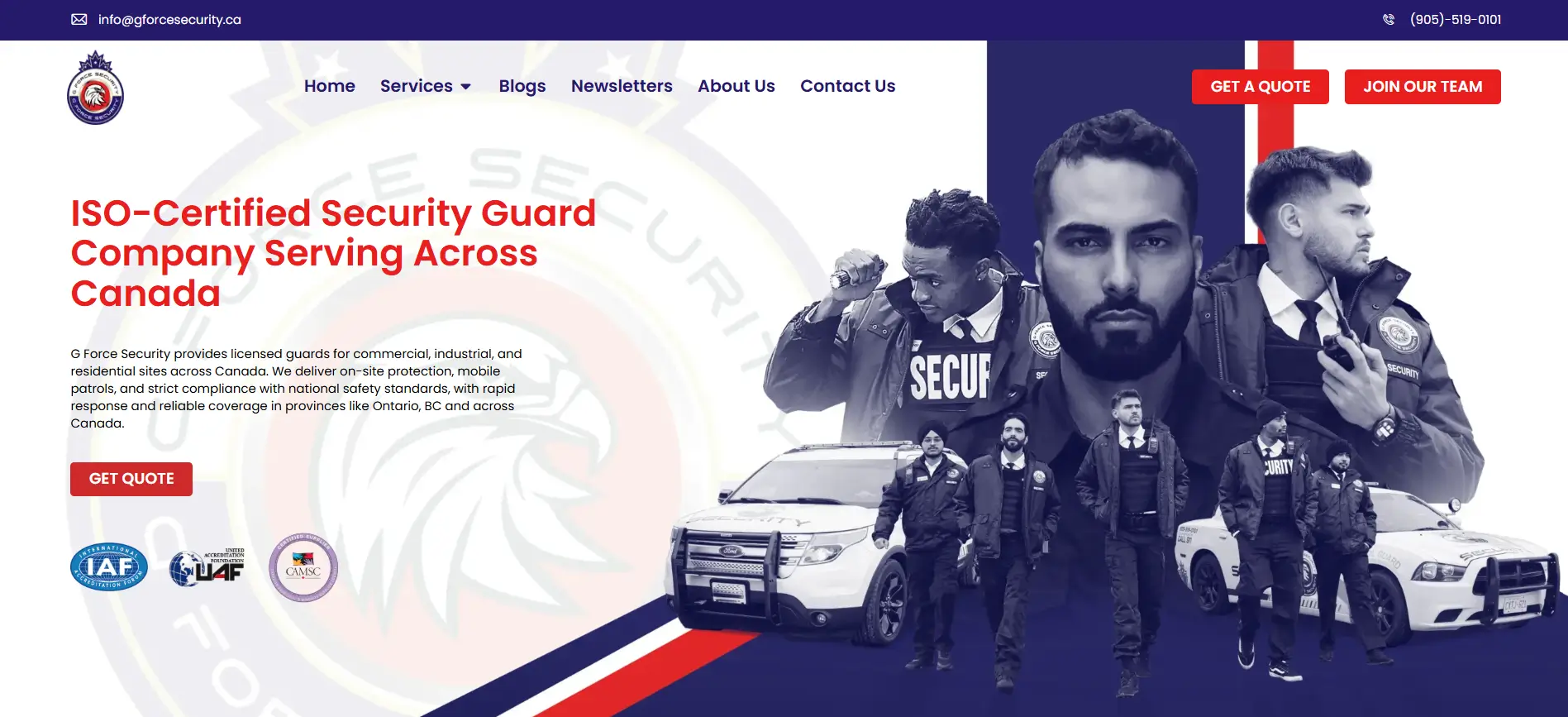 G Force Security provides licensed guards for commercial, industrial, and residential sites across Canada. We deliver on-site protection, mobile patrols, and strict compliance with national safety standards, with rapid response and reliable coverage in provinces like Ontario, BC and across Canada.